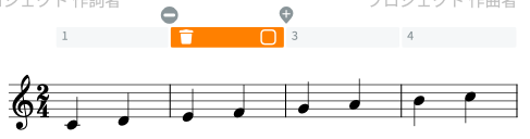 あとはお気づきの方もいらっしゃるかもしれません、ごみ箱アイコンをクリックするとその小節が削除され、「+」アイコンをクリックすると小節が挿入されます。