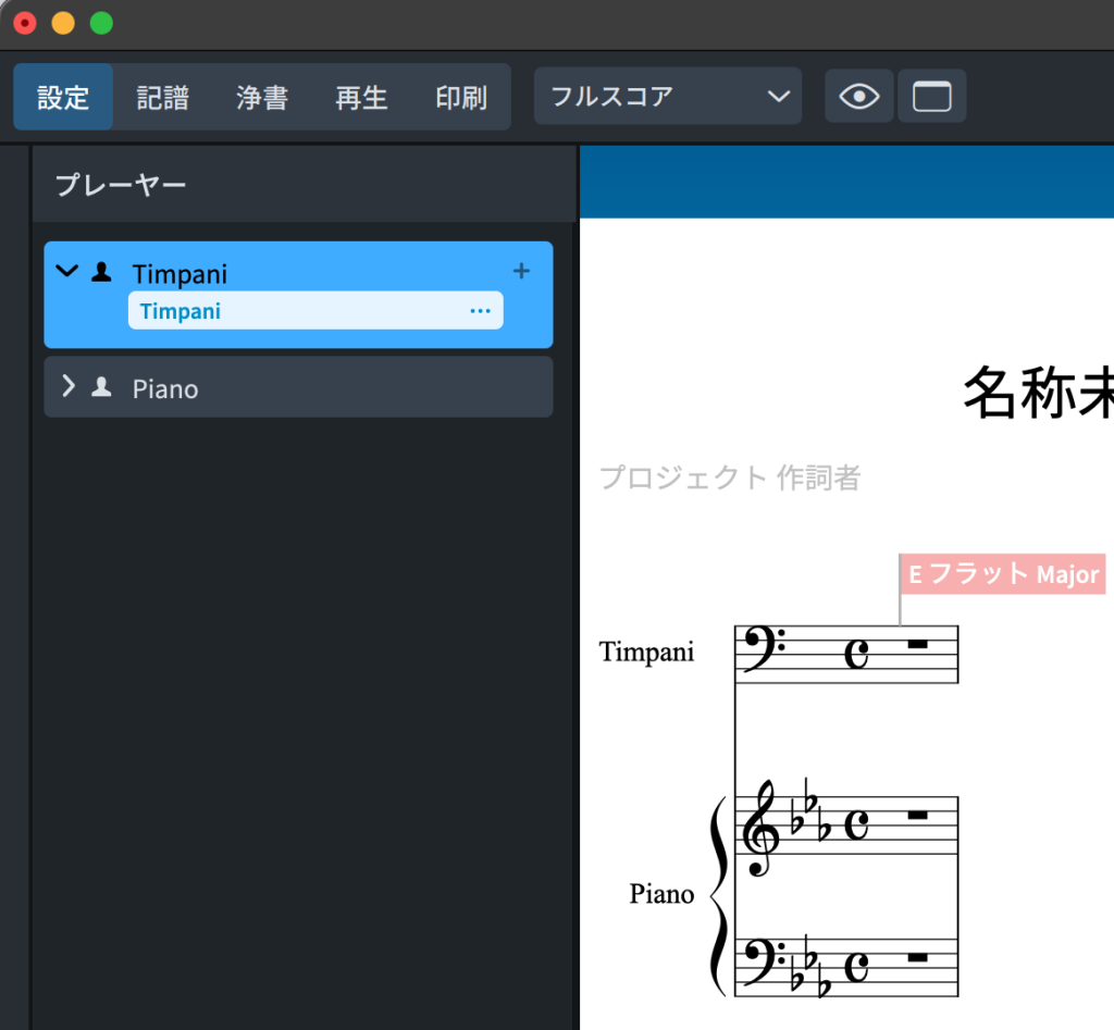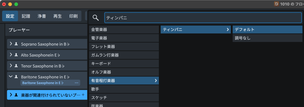 すると楽器選択画面が出てくるので、ティンパニの「調号なし」を選択しなおします。