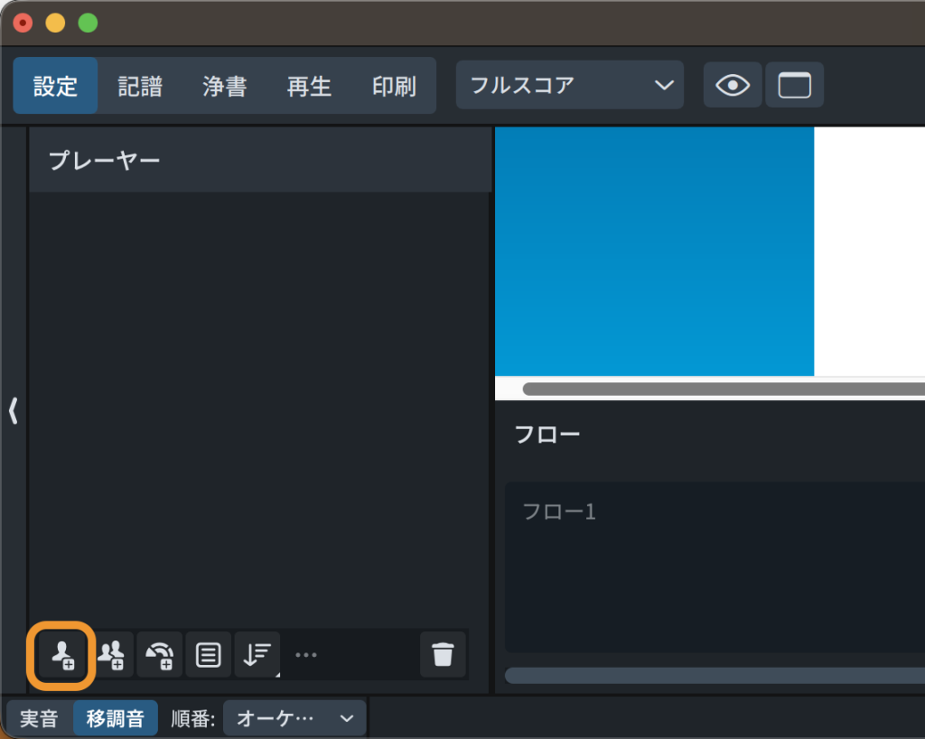 まずは「設定モード」の左ゾーン、「プレーヤーパネル」左下の「シングルプレーヤーを追加」ボタンをクリックして、アルトサックスを追加します。