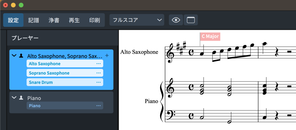 今回はプレーヤーに楽器を複数持たせて、持ち替えを表記する方法をご紹介しました。