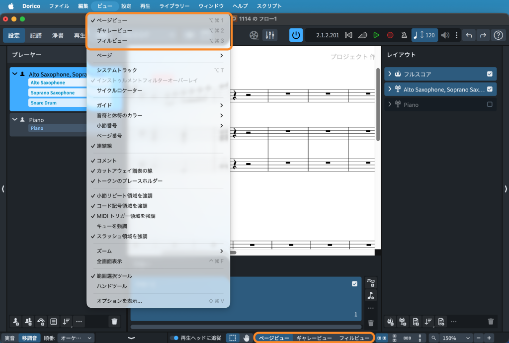 - フィルビュー:Dorico 6から新登場。画面サイズいっぱいに表示。