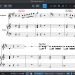 今回はアルトサックス(in E♭)からソプラノサックス(in B♭)、さらにスネアドラム(1線譜)に持ち替える指示を含む楽譜を作成してみます。