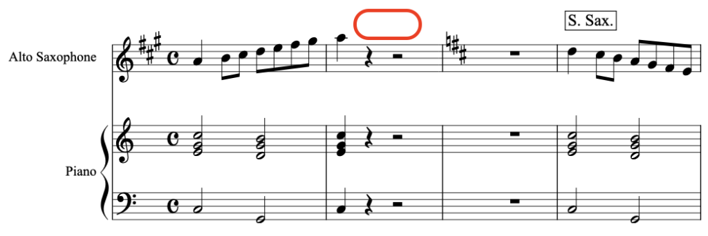 このあたりに「To S. Sax.」という予告が欲しいところです。
