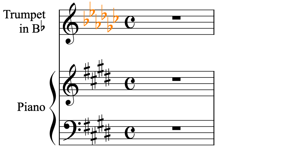 (「Trumpet in B♭」「B♭ Trumpet」「Trumpet (B♭)」など……)
