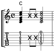 ギターに使われる演奏記号の例