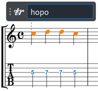 ハンマリングオンは「ho」(hammer-onの略)、プルオフは「po」(pull-offの略)と入力すると、なんとスラーと一緒に入力されます。