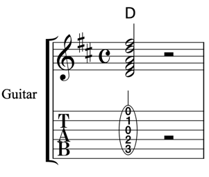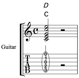 ダイアログを「OK」ボタンで閉じると、実音はそのままにタブ譜の表記が変わったことがわかります。