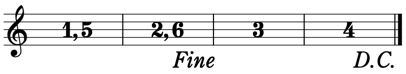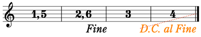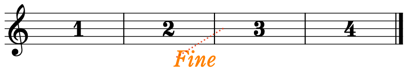 - D.C. al Fine:冒頭へ戻って、Fineで終わる
