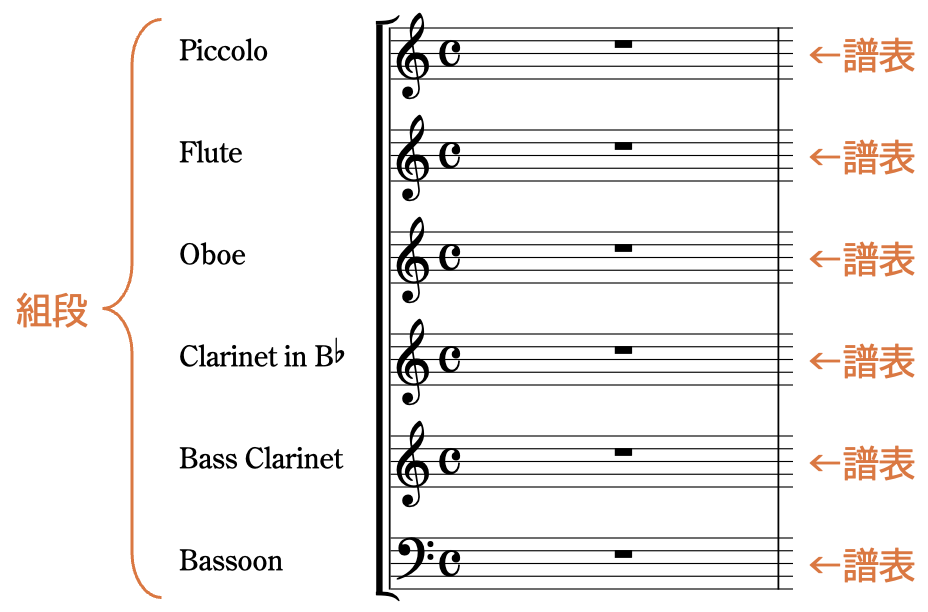 Doricoにおける譜表と組段。Finaleではそれぞれ五線と組段と呼んでいました。
