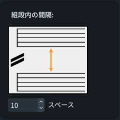 ※少しわかりづらいのですが、組段と組段の間隔は「組段内の間隔」で設定します。原語はInter-system gapなので、「組段間の間隔」「組段どうしの間隔」などと訳したほうが親切かもしれません。