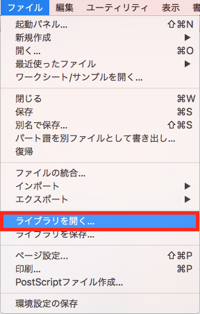 まずは、[ファイル]メニューの[ライブラリを開く]をクリックします。