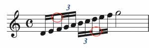 「記譜」…音部記号、調号、拍子記号、小節線など